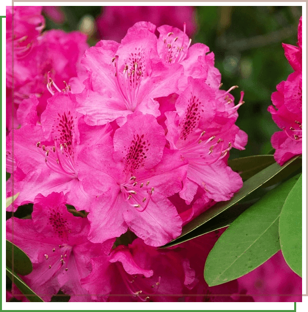 Плотные соцветия по 15 цветков. Большие овальные листья. Прекрасный солитер. Высота 2-2,5 м, диаметр 3 м. Цветение в апреле-мае. Цветки ярко-розовые, с чуть светлым центром, ажурные. Почва влажная, кислая, рыхлая, дренированная. Место теплое, защищенное от ветра. Полутень/тень. Морозоустойчив. На зиму мульчирование кислым торфом и укрытие от ветра.