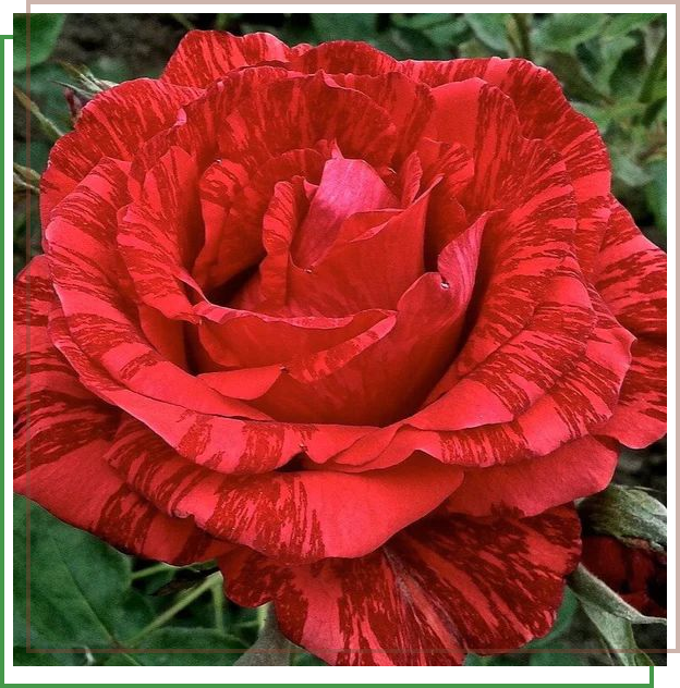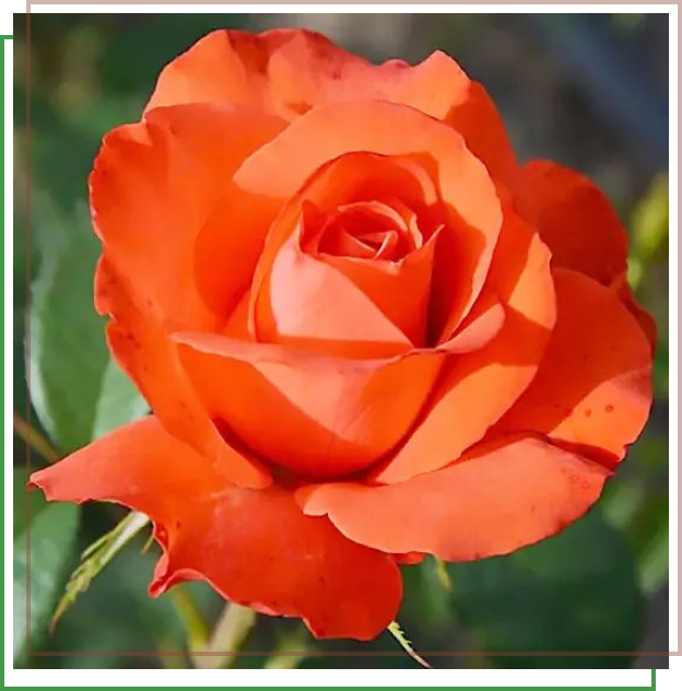 Очень красивая, яркая роза замечательной оранжево-красной окраски. Цветы классической формы распускаются из красивых конических бутонов с высоким центром. Цветы крупные, около 10 см в диаметре, махровые (35-45 лепестков), появляются по одному на крепких цветоносах.